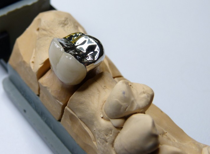 Precious metal crown with porcelain buccal facing
