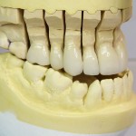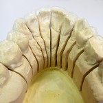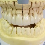 We were asked by one of our dentists to do a diagnostic wax up of the upper teeth from 6-6. The patient had a class III bite with a over jet and large anterior open bite. The dentist wanted us to close the bite as much as reasonably possible with porcelain veneers. We poured the study model impressions in hard stone and duplicated them.